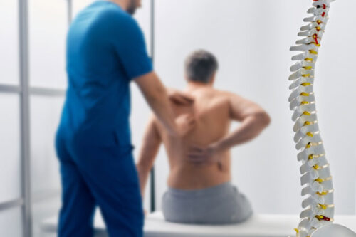 التاريخ الطبي والفحص السريري: لتقييم طبيعة الألم ومرونة العمود الفقري.