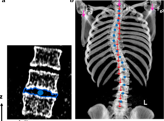 هدفت الدراسة إلى معرفة كيف تؤثر الجاذبية على العمود الفقري المصاب بالاعوجاج، وما إذا كانت تزيد من تطور الانحناء أو تغيّر شكل الفقرات بمرور الوقت. استخدم الباحثون تقنيات تصوير ثلاثية الأبعاد (3D CT) لمجموعة من المراهقين المصابين باعوجاج معتدل، وركّزوا على العزوم (moments) أو القوى الجانبية التي تؤثر على الفقرات بسبب الجاذبية.