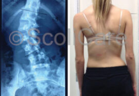 20 فتاة مراهقة مصابة بانحناء في العمود الفقري من جهة اليمين.