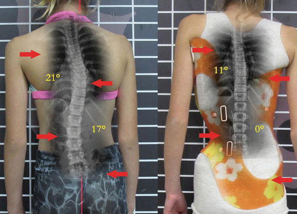 وجود انحناء صغير إلى متوسط في أسفل الظهر عند ارتداء الحزام يزيد من فرص نجاح العلاج. وبالمثل، إذا كان الانحناء خارج الحزام أكبر في مناطق معينة، خاصة عند المراهقين ذوي الظهر المحدب قليلًا، فهذا يحسن النتائج. -
