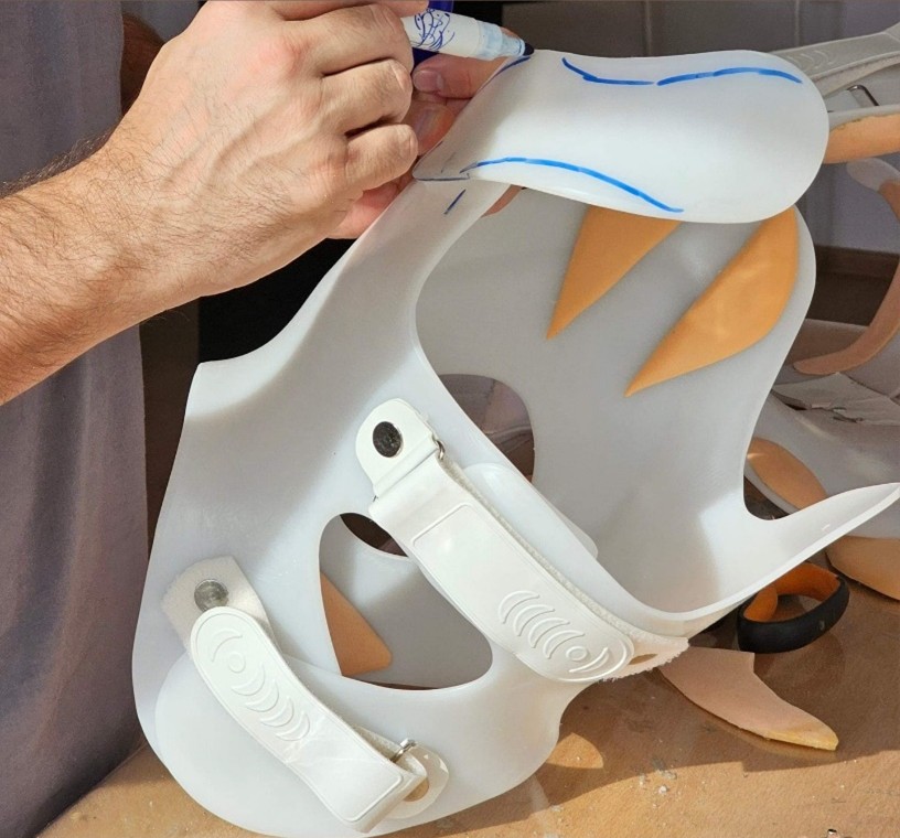 بعد تقييم حالتك، يقوم فريقنا بأخذ قياسات دقيقة لتنفيذ حزام تقوس الظهر PioBrace-KT خصيصًا لك. يتم تصنيع الحزام في مختبرنا باستخدام أحدث التقنيات والمواد الموصى بها، مع ضمان تعديلها لتلبية احتياجاتك العلاجية بشكل مثالي.