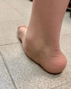 ضغط زائد على باطن القدم بسبب ميل الجسم إلى جانب واحد، مما يؤدي إلى التهاب الأنسجة أسفل القدم، خاصة عند الاستيقاظ من النوم أو بعد المشي لفترات طويلة.